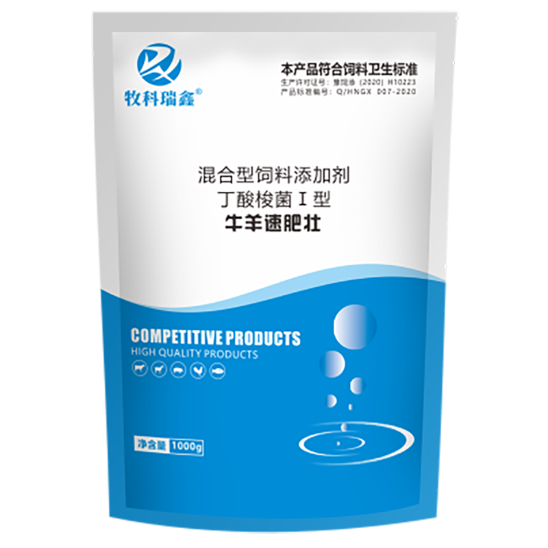 【主要成分】丁酸梭菌、维生素预混合饲料、维生素A、维生素E等、复合维生素、复合氨基酸、复合有机微量元素、瘤胃素、诱食肽、植物生长调节剂。