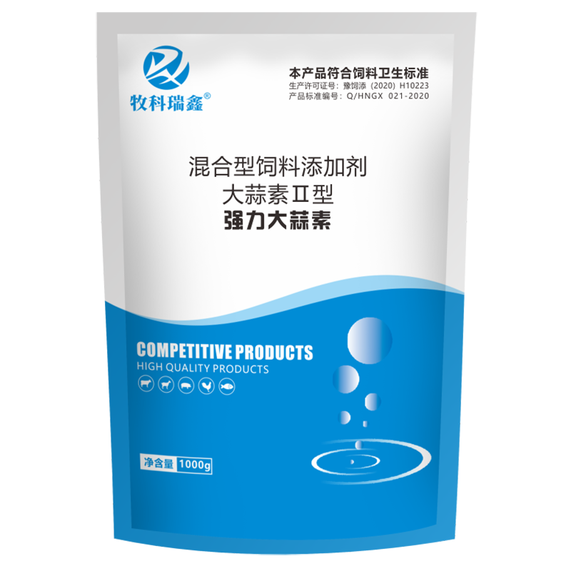2、具有诱食作用。大蒜素具有浓厚的自然香味,能改变饲料的自然风味和因饲料中使用添加剂、药物等所带来的异昧,刺激采食,增加胃液分泌,促进生长。